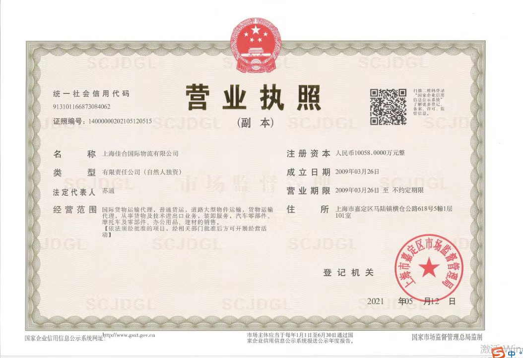 【標題】上海佳合國際物流有限公司注冊資本10058萬,大型貨物運輸資...查看詳情>>>